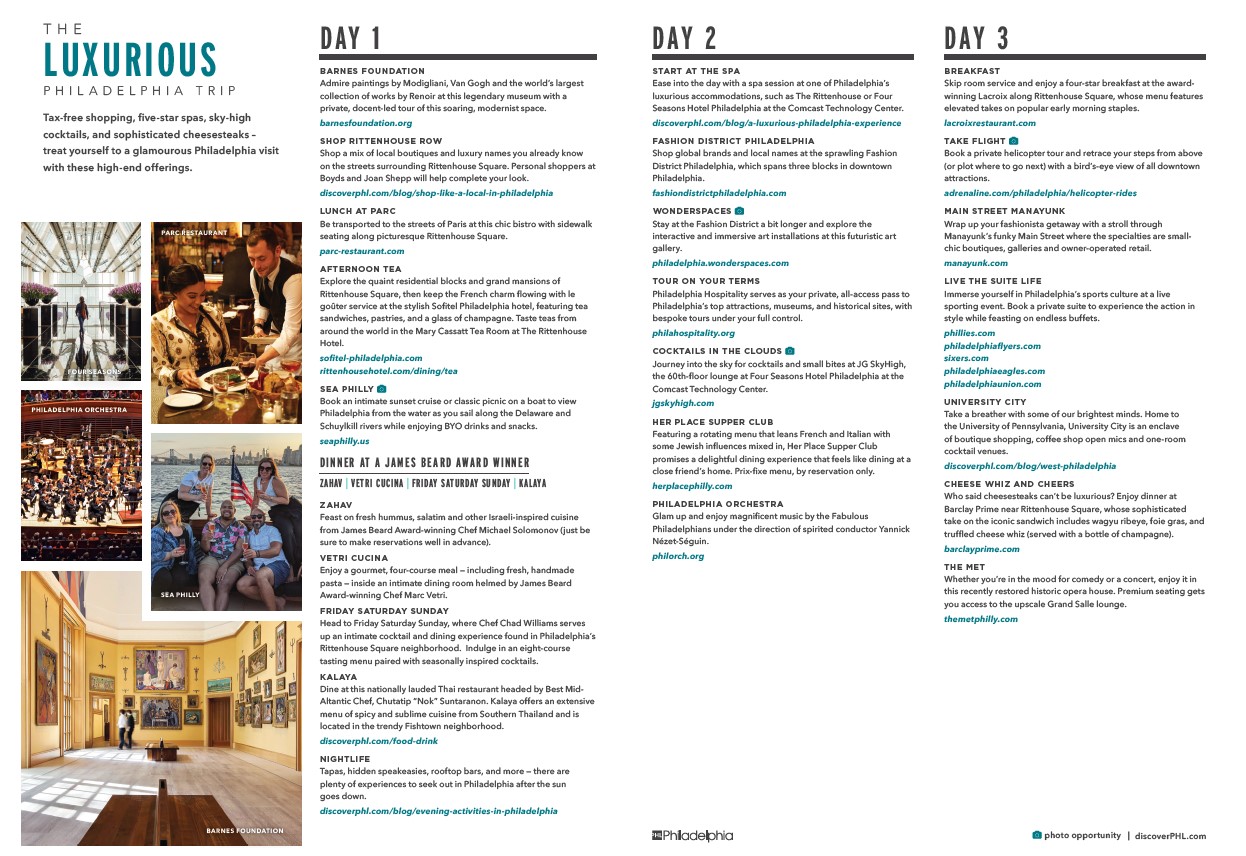 Experience quintessential history, unparalleled arts and culture, vibrant neighbourhoods, award–winning chef-driven restaurants, vast outdoor spaces, and tax-free shopping in an all-season destination. With great connectivity by air, train and car, Philadelphia is the ideal East Coast gateway for an unforgettable American adventure.