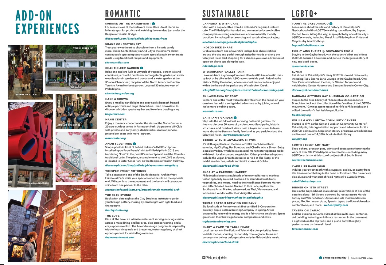 Philadelphia now has the proud distinction of being one of just eight destinations in the United States with its own Michelin Green Guide. The Michelin Green Guide highlights Philadelphia as a premier travel destination. It explores the great attractions, restaurants, hotels, and experiences in Philadelphia and The Countryside of Philadelphia. The Philadelphia Convention and Visitors Bureau partnered with Michelin to create the guide and bring the esteemed publication to the city.