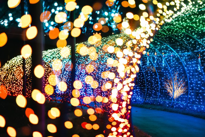 More than a million lights create dozens of illuminating, animal-themed displays that are spread throughout the grounds. Experience different themed zones, including the popular Penguin Prismatic area, featuring a 40-foot-tall penguin that glimmers with 40,000 lights. Another whimsical zone is the Shimmer River, featuring a 100-foot-long tunnel made of 4,000 lights that create scenes from growing vines to blooming flowers.